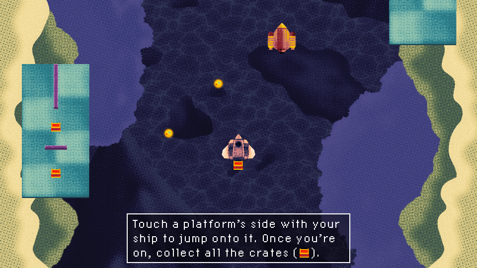 - Blast incoming fire with your ship’s guns, then hop out to grab crates from sketchy floating platforms.